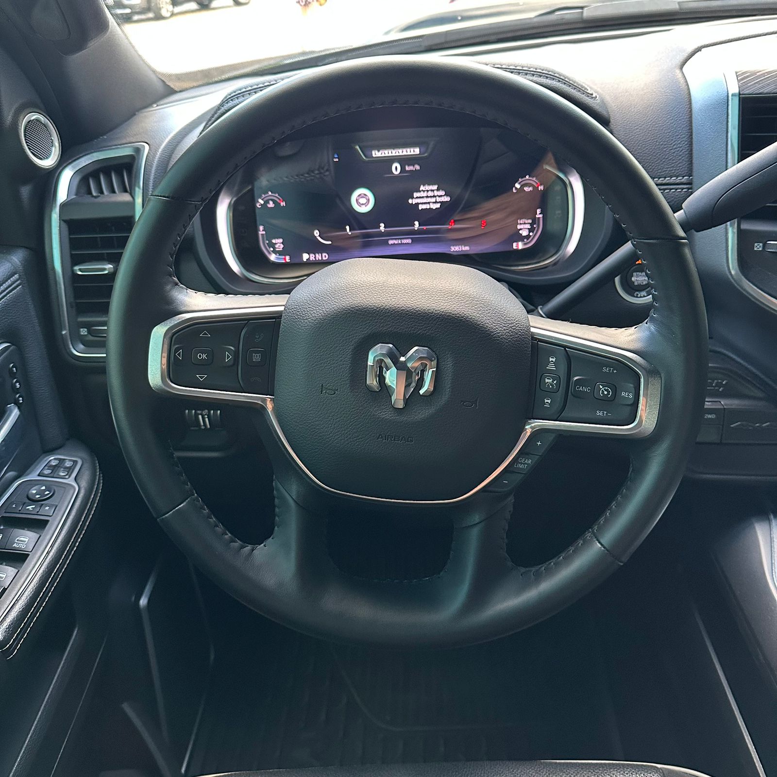 Volante multifuncional revestido em couro, aquecido e com ajuste de altura e profundidade