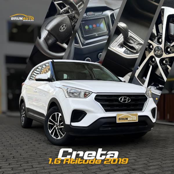 Detalhes: Hyundai Creta Attitude 1.6 2019. Se você procura um SUV confortável, espaçoso e confiável, acabou de encontrar. Modelo que une posição de dirigir elevada, bom espaço interno e ótima dirigibilidade, ideal tanto para o dia a dia quanto para viagens. Motor 1.6 com bom desempenho e consumo equilibrado, junto ao câmbio que garante uma condução suave e segura. SUV com excelente espaço interno e porta-malas amplo, perfeito para quem busca conforto e versatilidade. Versão Attitude com bom nível de equipamentos, trazendo praticidade e segurança na condução. Veículo íntegro, pronto pra rodar. VEM PRA BRUNAUTO.
