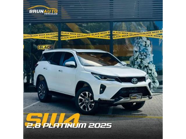 Detalhes: Toyota Hilux SW4 2.8 D-4D Turbo Diesel SRX Platinum 7 lugares 4x4 Automática 2025, com 27 mil km. SUV de alto padrão, extremamente robusta e confortável, com motor diesel potente, tração 4x4, acabamento premium e amplo espaço para toda a família. Ideal para quem busca luxo, segurança e desempenho em qualquer terreno. Pronta para rodar! Outros Opcionais: Banco bi-partido, Comando de áudio no volante, Controle de estabilidade, Distribuição eletrônica de frenagem, Farol de neblina, Kit Multimídia, MP3 Player, Pára-choques na cor do veículo.