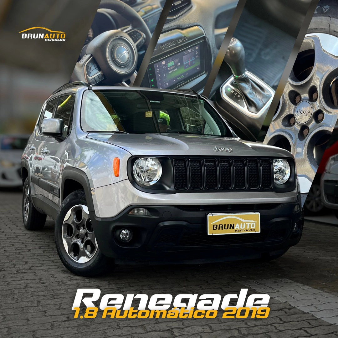 Detalhes: Jeep Renegade 1.8 16V Flex Automático 2019, com 67 mil km. SUV robusto, confortável e com excelente dirigibilidade, ideal para quem busca segurança e estilo no dia a dia. Disponível na Brunauto Veículos com garantia total. Venha conferir!